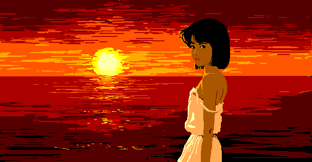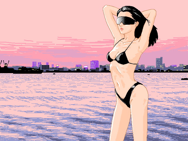 - 東京湾のサイバー水着女 Cyber Swimsuit Woman in Tokyo Bay yip04.gif (18KB) 「東京湾の風景」の背景画をそのまま使ってます。 This picture used the background image of the work "Tokyo Bay" as it is. (1995)