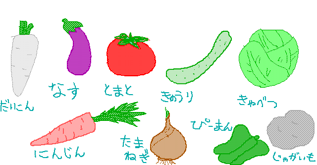 - 野菜 Vegetables yasai.gif (9KB) 上と同じ。Same as above. (1991)